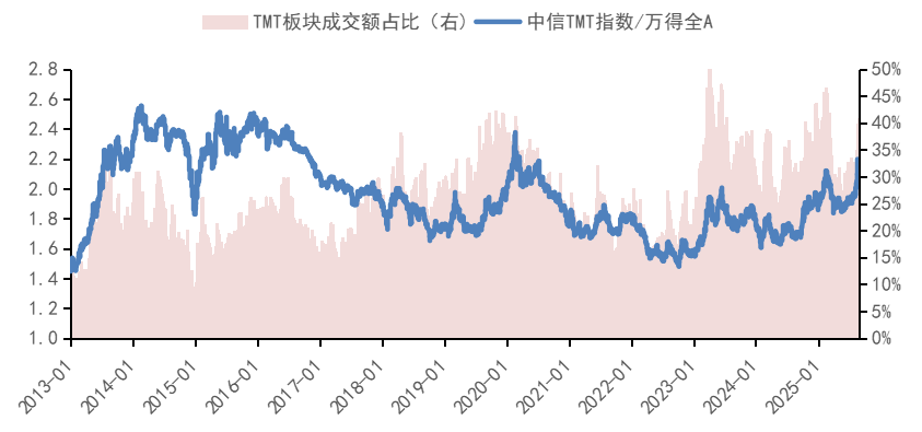 从估值看,当前TMT板块整体的市盈率水平来到至近十年70%分位点水平,从成交占比看,今年初Deepseek引领科技行情演绎到极致时,TMT板块成交占比最高来过46%,目前TMT板块成交占比再次来到40%附近,过往经验看,短期交易拥挤度的提升带来的波动加剧在所难免,但并不意味着行情的必然终结,行情的持续性需回到产业趋势的具体路径上。从产业趋势看,伴随着海内外大模型持续迭代,其在各类应用场景中的落地有望进一步加速,并拉动算力基础设施的需求。当前海外AI应用已从试验阶段进入规模化落地阶段,国内DeepSeek-V3.1亦在增强国内算力自主可控逻辑和国内AI应用落地信心。从政策面看,近日国务院发布《国务院关于深入实施“人工智能+”行动的意见》,成为继2015年“互联网+”后又一顶层政策,政策红利有望加速AI产业链势能释放。整体来看,AI产业长期发展的叙事并未变化,短期则可以继续沿着科技方向尚未被充分定价的细分领域进行逢低布局。