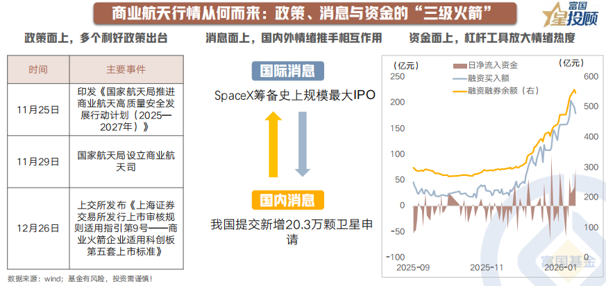 资金面是近期商业航天高热度行情的核心原因。大量资金涌入相关ETF,融资融券余额提升,提示杠杆工具对情绪的放大作用。