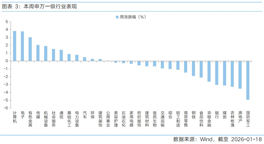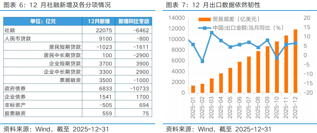 12月出口数据、社融和信贷数据均超出市场预期,当前时间窗口基本面数据证伪风险或较低,叠加政策支持环境未变,春季行情仍有纵深演绎的空间。本周三公布数据显示2025年出口强势收官,中国12月以美元计价出口金额同比增长6.6%,预估为增长2.2%,前值同比增长5.9%;再次展现了中国出口商在开拓非美非转口地新订单、以及资本品出口动能恒强的逻辑。本周四公布的25年12月金融数据延续“总量充裕、结构分化”的特征:12月社融、信贷总量均超出市场预期,不过居民信贷持续偏弱,企业中长贷改善的持续性仍有待观察。M2同比回升,指向流动性仍较充裕;但M1增速进一步下滑,M2-M1“剪刀差”走阔,资金活跃度较前期有所下降。在此背景下央行出台一揽子金融支持实体的组合政策,包括结构性降息25BP、重点领域资金投放及楼市支持等。在12月PMI、出口等多项基本面数据改善的背景下,本次结构性降息体现政策支持力和定力,虽然短期看总量降准降息相对必要性下降,不过央行发言人表示“从今年来看,降准降息还有一定空间”,重点关注全国两会、美国中期选举前后的时间窗口。此外,开年以来国内财政便在积极靠前发力,产业政策也带来半导体、电力等方向的结构性机会显现,政策发力有望继续为市场提供向上支撑。